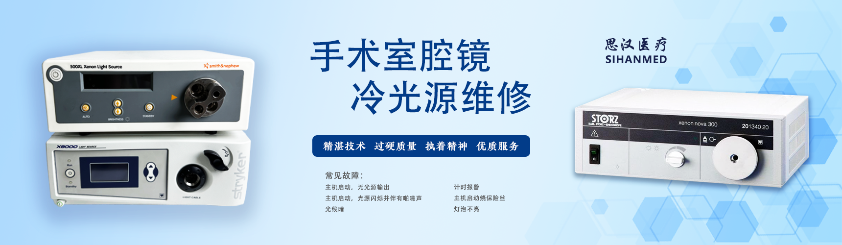 杭州思汉医疗设备有限公司是医疗电子设备解决方案服务商,专注于医疗电子设备领域,坚持稳健经营、持续创新、开放合作,在医院、经销商、第三方技术服务商等领域构筑了端到端的解决方案优势,为行业提供有竞争力的医疗电子设备解决方案和技术服务。思汉医疗汇聚了一批资深的技术专家,他们在软镜 & 电子镜、摄像系统、动力系统、硬管镜、气腹机、冷光源、超声换能器、超乳仪手柄等维修项目上经验丰富。无论是 STORZ、Stryker、WOLF 等国际知名品牌设备,还是其他小众品牌,面对复杂的故障都能精准诊断并高效修复。